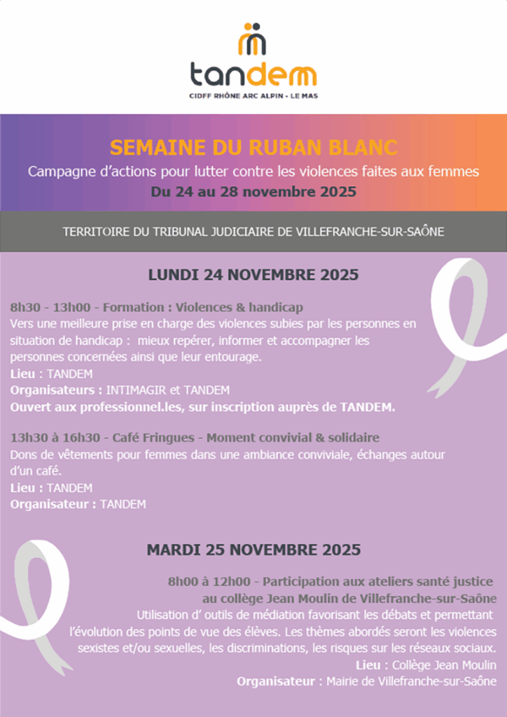 Semaine du Ruban Blanc, du 24 au 28 novembre – Tandem – Villefranche-sur-Saône